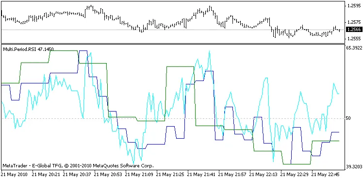 例えば、H1未満の期間で次のパラメータを持つ3つのインジケーターをウィンドウに配置すると: