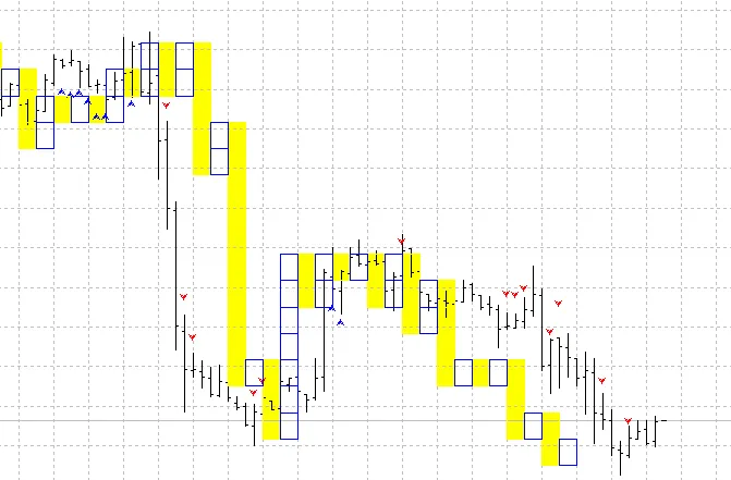 在MT4窗口中,新价格柱不断出现,但棋盘指标不会移动,除非价格超过阈值。这就是为什么指标图表与MT4屏幕上显示的价格图表不匹配的原因。