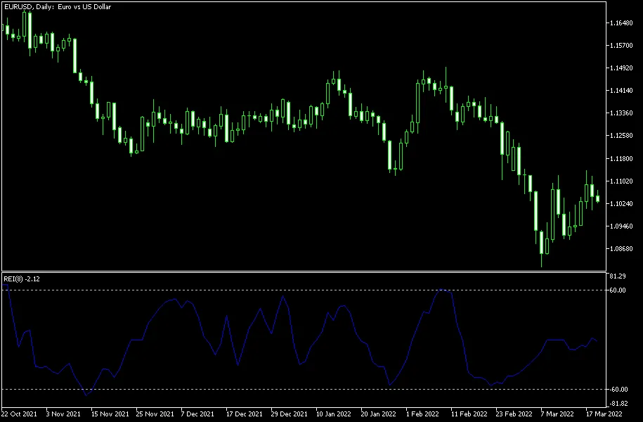 - REI周期(默认 = 8)— 指标的周期。增加该值可以减少信号数量,但提高信号的准确性;减少该值则会产生更多但不那么准确的信号。建议保持默认设置。