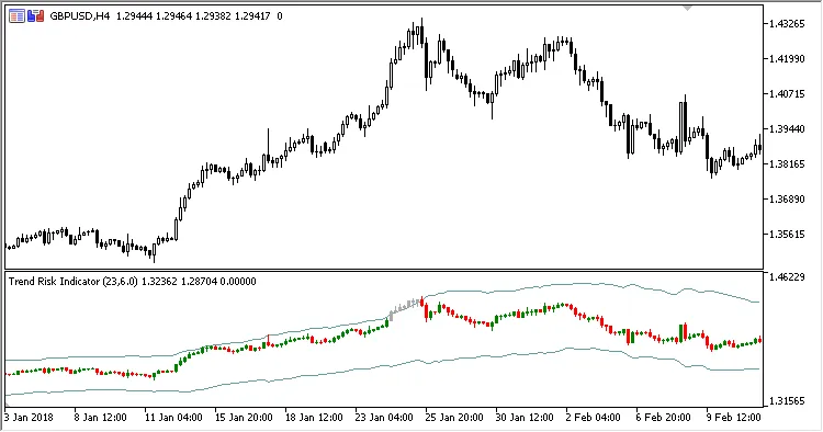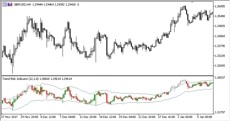 该指标在独立窗口中显示彩色的日本蜡烛图——看涨蜡烛为 绿色,看跌蜡烛为 红色。如果蜡烛图收盘价突破了由带宽形成的通道,蜡烛则会被涂成 灰色,并将突破通道线的值添加到指标信号缓冲区,这样可以帮助专家顾问判断突破方向,并根据所用交易系统限制交易方向。
