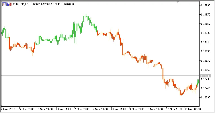 进阶分形叠加指标是一个非常实用的工具,它通过根据价格相对于最后一个上分形或下分形的运动方向来显示彩色蜡烛图。