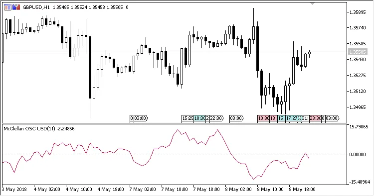 맥클레런 오실레이터는 19일 이동 평균(MA)과 39일 이동 평균의 차이를 나타내는 지표로, RANA 지표의 값을 기반으로 합니다.
