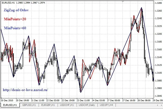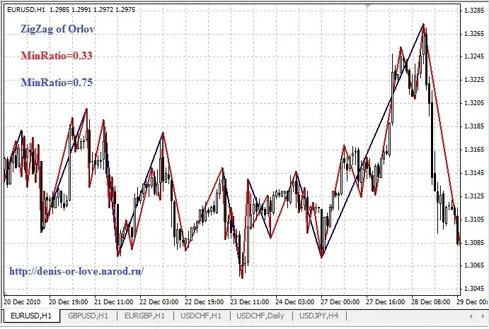 여러 가지 지그재그 지표들이 있지만, 대부분 복잡한 알고리즘으로 인해 원하는 결과를 얻기 어렵습니다. 또한 조정과 작업 원리를 이해하기도 힘듭니다.