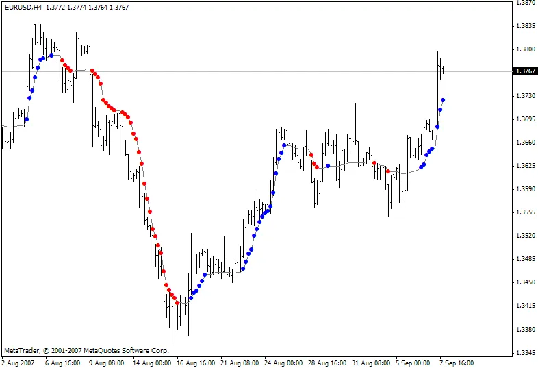 deltaAMA < dK * StdAMA이면, 하락세로 간주되며, AMA 선에 빨간 점이 표시됩니다.
