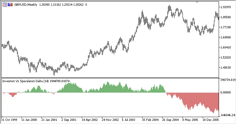 투자자와 투기자의 델타는 투자자와 투기자의 또 다른 버전으로, 주요 플레이어인 투자자들의 행동과 시장 거래자들인 투기자들의 행동 비율을 색상 히스토그램으로 표시합니다.