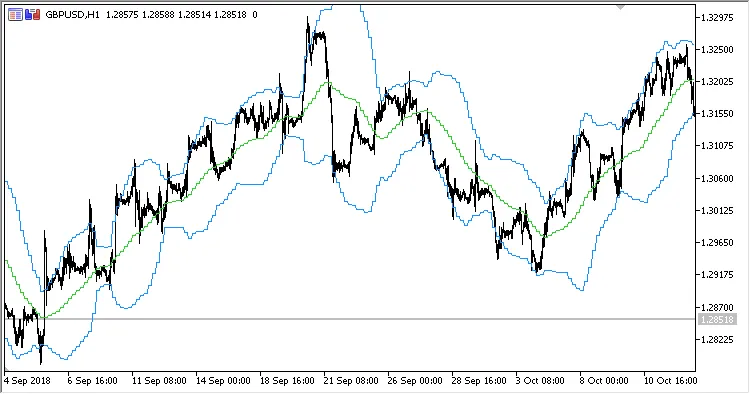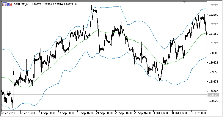 Fig.4. 고시간대 볼린저 밴드, H8 데이터가 H1 차트에 표시 (그리기 모드 = 경사)