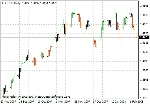 Oggi parliamo dell'indicatore CandlesticksBW, un tool prezioso per ogni trader che utilizza MetaTrader 4. Questo indicatore è progettato per tracciare le barre secondo il metodo di B. Williams, offrendo così una visione chiara e dettagliata del mercato.