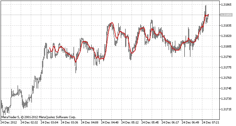- De indicator berekent het Test_DEMA_OnArrayRB.mq5 bestand op basis van de prijs tijdreeks. De toepassing van de MainOnArray() methode wordt gedemonstreerd.