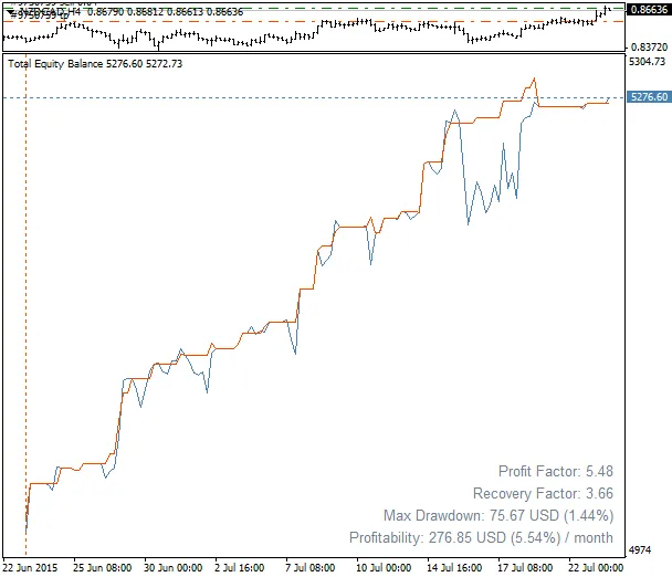 - Show_Info — muestra estadísticas (rentabilidad, drawdown, factor de ganancias y factor de recuperación).