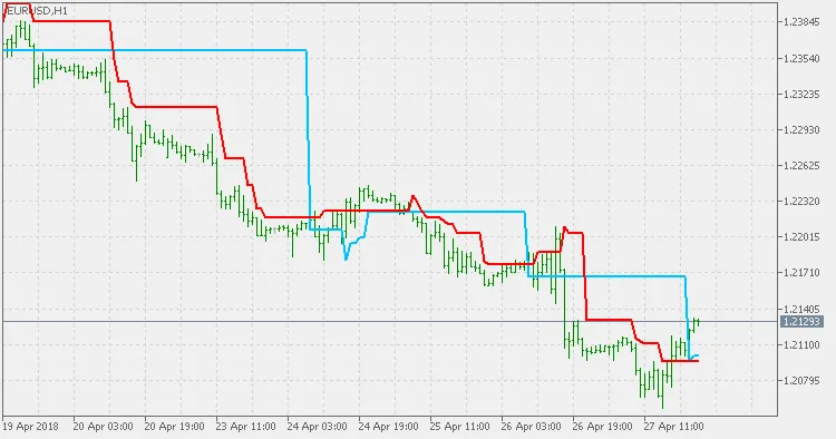 La línea de retroceso se utiliza inicialmente como línea de resistencia. Se calcula a partir del mínimo más reciente en la tendencia actual. Cualquier acción entre la línea de retroceso y el punto mínimo existente se ignora.