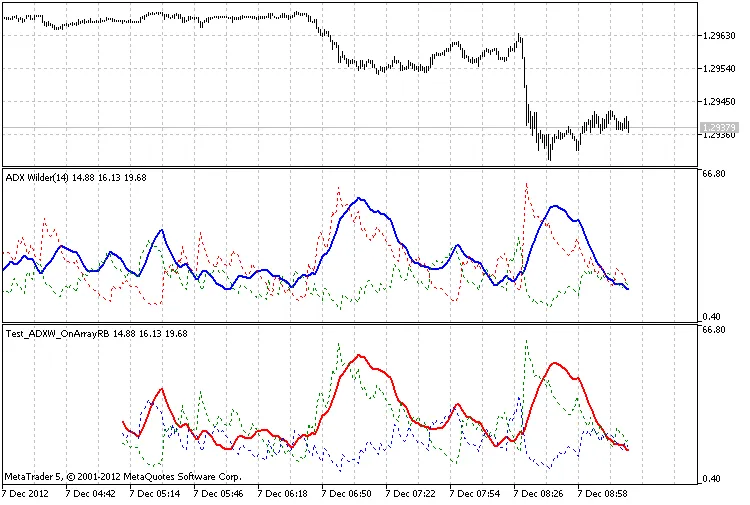 - The Test_ADXW_OnValueRB.mq5 file demonstrates the use of the MainOnValue() method. It first calculates and displays the ADXW indicator, then computes three lines of the ADXW indicator based on the ring buffer.