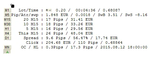 - 第3行:选择的时间框架内最近20个周期的平均点数 / 同样的信息但以货币表示。
