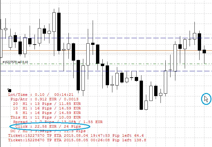 当你点击图表时,会告诉你(以你的货币计算)点击与当前市场价格之间的差距(基于点值)。这样你可以在开盘前知道这笔交易的潜力,看看风险是否值得。