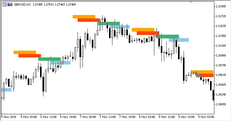 このインジケーターは、H1またはそれ以下の時間足のチャートでのみ動作します。より高い時間足に切り替えると、インジケーターが警告し、時間足をH1に戻します。