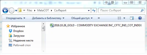 (Lokasi folder tempat Anda dapat menemukan file yang diperlukan kira-kira sebagai berikut: C:\Users\UserName\AppData\Roaming\MetaQuotes\Terminal\Common\Files\MetaCOT\CsvReport, di mana UserName adalah nama Anda di sistem operasi Windows).