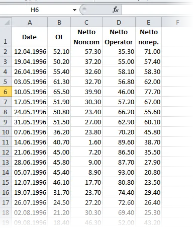 - Unduh data laporan dasar melalui perpustakaan MetaCOT 2 CFTC ToolBox dalam bentuk dua array: tanggal - nilai (datetime, double);