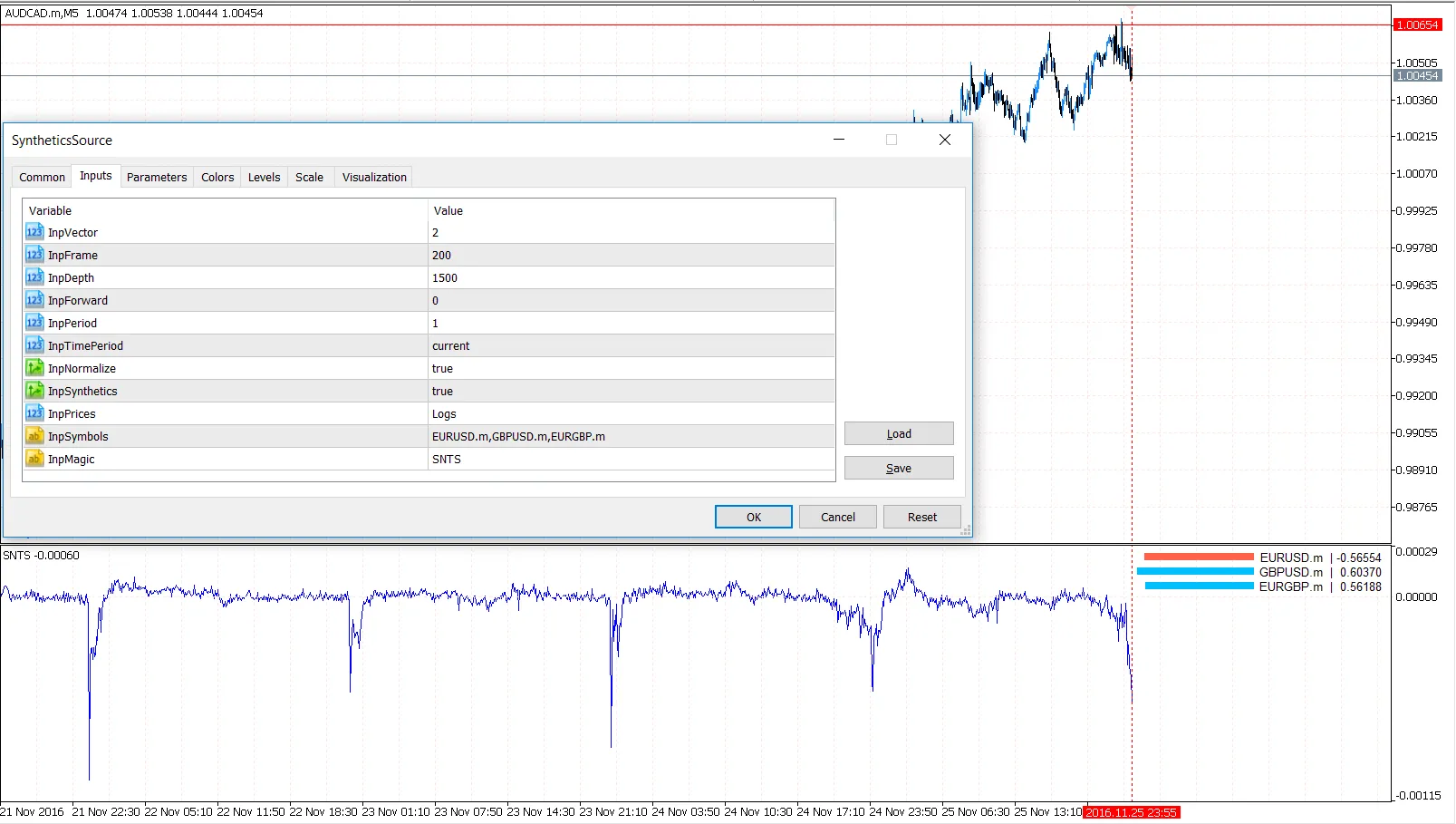InpSynthetics = true; // Teken de samenvattende synthetische portefeuille vermenigvuldigd met de gevonden coëfficiënten of elk paar afzonderlijk