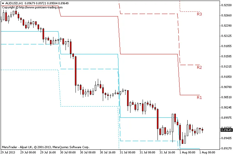 枢轴点分析通常与支撑位和阻力位的计算结合使用,类似于趋势线分析。在枢轴点分析中,首个支撑位和阻力位是通过计算枢轴点与前一天的高点或低点之间的交易区间宽度得出的。而第二个支撑位和阻力位则是通过前一天的高点和低点之间的全宽度来计算的。