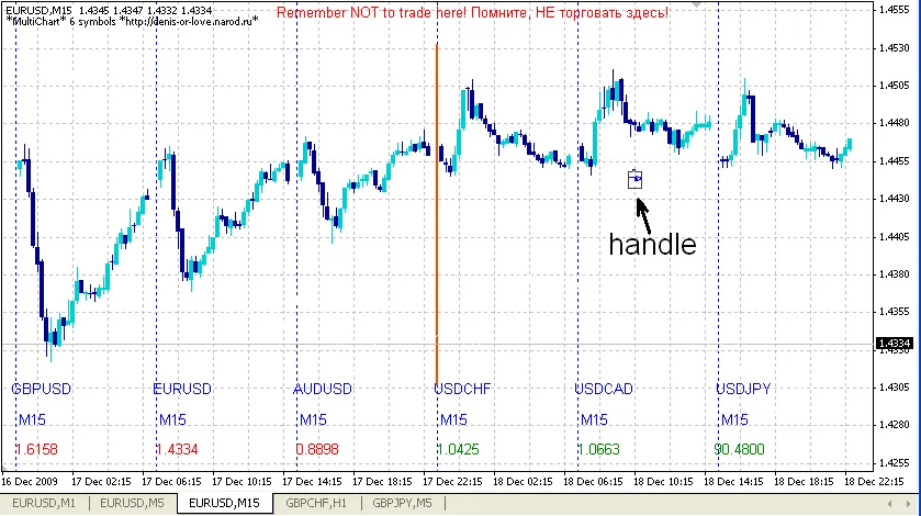 การตั้งค่ากราฟ: Instruments = "EURUSD240 EURUSD60 EURUSD30 EURUSD15 EURUSD5 EURUSD1"; Bars_ = 12; // จำนวนบาร์ ChartsGap = 1; // ระยะห่างระหว่างกราฟ GoldColor = False; // เปิด/ปิดโหมดสีทอง