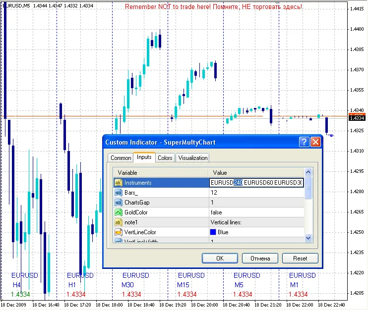 Instruments = "EURUSD240 EURUSD60 EURUSD30 -EURUSD15" จะวาดกราฟของ EURUSD ในระยะเวลา H4, H1 และ M30
