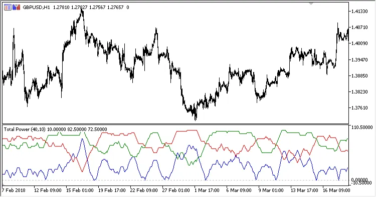 Total Power指标显示了三条重要的线:多头力量、空头力量和总力量。通过这三条线,我们可以清楚地看到市场的买卖力量对比。