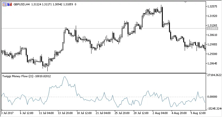 - Twiggs资金流动的正值指向市场的牛市趋势,负值则表明熊市趋势。