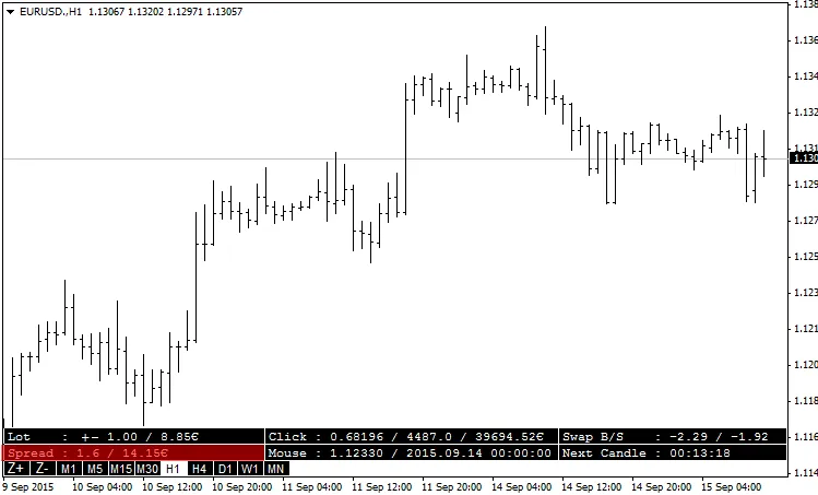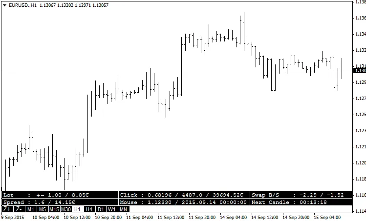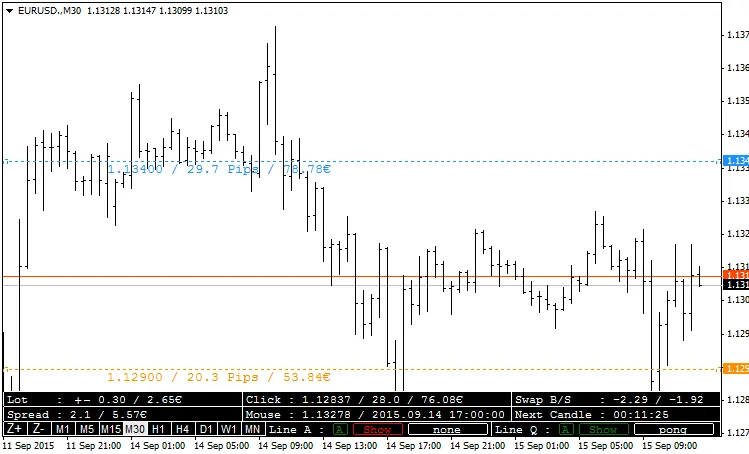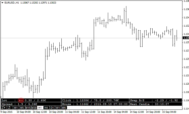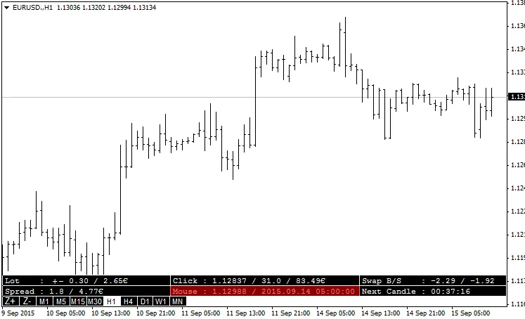 Mouse Click on Chart: Clicking on the chart reveals information about the mouse position, including the price and pip difference from the current price. This is super handy for assessing potential trades.