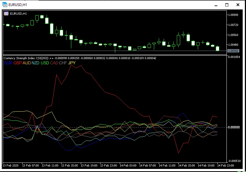 Der Währungsstärkeindex (CSI) kann auf jeden Chart für jedes Währungspaar angewendet werden.