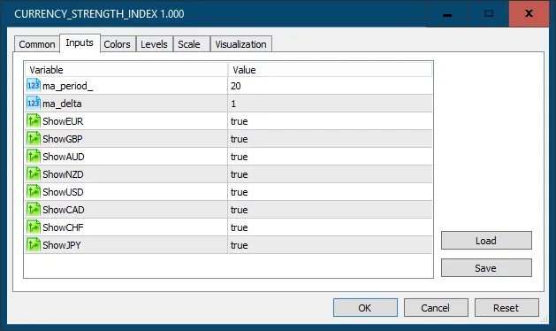 Du kannst den Währungsstärkeindex (CSI) anpassen, um ihn auf verschiedene Handelszeiträume abzustimmen.