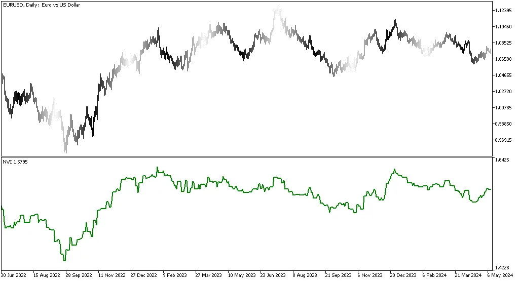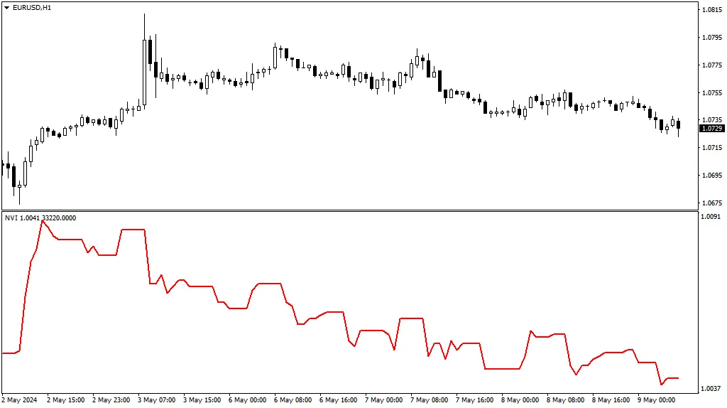नेगेटिव वॉल्यूम इंडेक्स (NVI) एक मुफ्त तकनीकी संकेतक है जो MT4 और MT5 प्लेटफार्मों में उन्नत चार्ट विश्लेषण के लिए उपयोग किया जाता है। यह टिक वॉल्यूम पर आधारित है (MT5 में वास्तविक वॉल्यूम से बदला जा सकता है) और इसमें दो उपयोगी विशेषताएँ शामिल हैं: