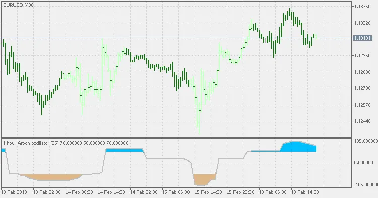 这个版本修正了在MetaTrader版本的Aroon震荡指标中常见的问题,即-100的水平无法达到。同时,它还加入了多时间框架的选项。除了MetaTrader 5中可以使用的所有标准多时间框架外,这个版本还提供了3个额外的“时间框架”: