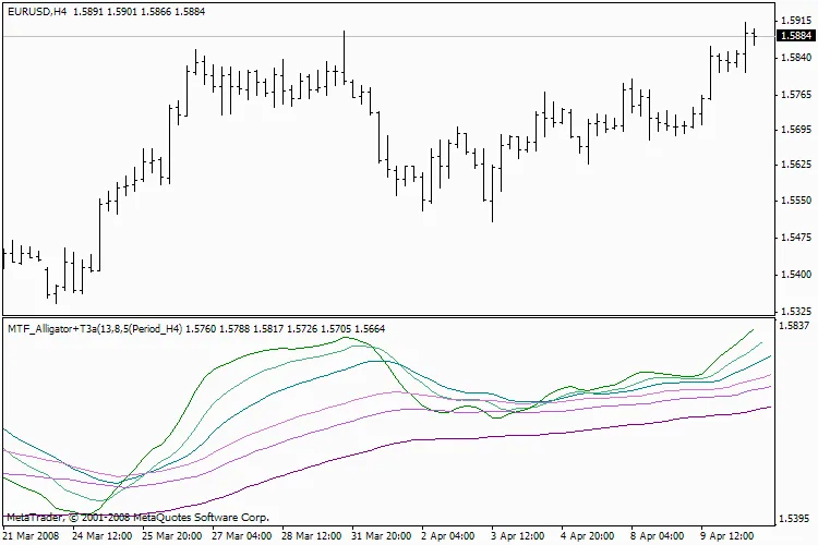今天我们来聊聊一个非常实用的交易指标——多时间框架的鳄鱼指标(MTF Alligator)与T3指标的结合使用。这两者的结合能够帮助我们更好地把握市场趋势,提高交易的准确性。