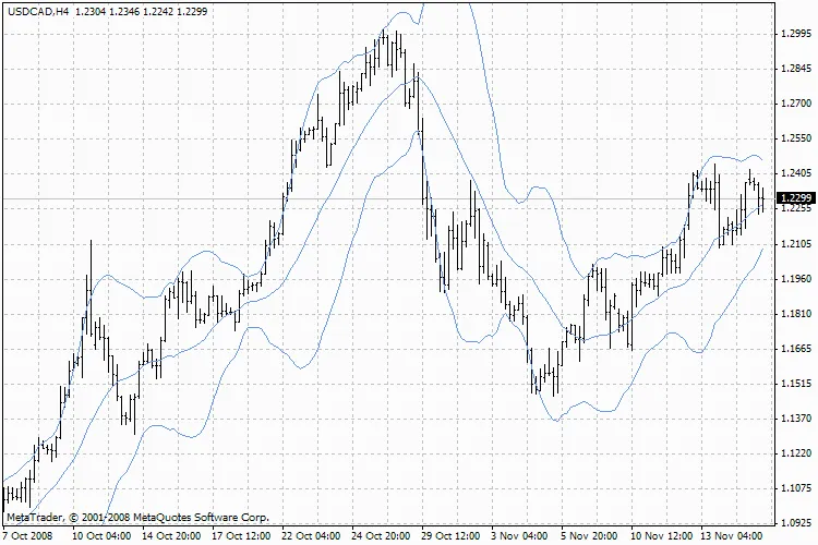 - 从某条带线开始的价格运动,通常会到达另一条带线。
