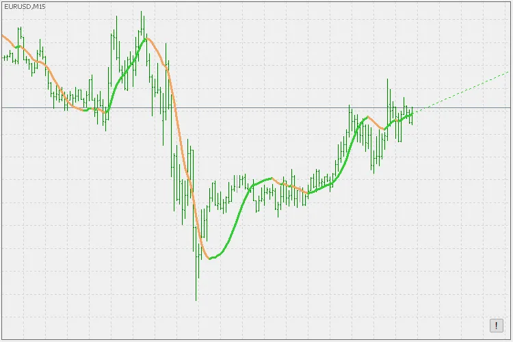 和往常一样,建议不要在信号模式下使用预测部分。预测部分是变化的,应该仅用作双重平滑的趋势成分的估计,而不是作为信号。这款指标的警报并不是在报警预测部分的变化,而是“过去”部分的变化——这种变化是不会随着时间的推移而改变的。