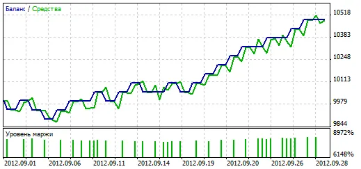 Gambar 2. Hasil kerja Expert Advisor selama sebulan terakhir (09.2012) pada EURUSD M15.