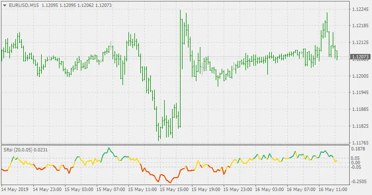 “Le linee verdi rappresentano i segnali di acquisto, quelle rosse i segnali di vendita e quelle gialle indicano un equilibrio tra acquisto e vendita sull'SRSI.”