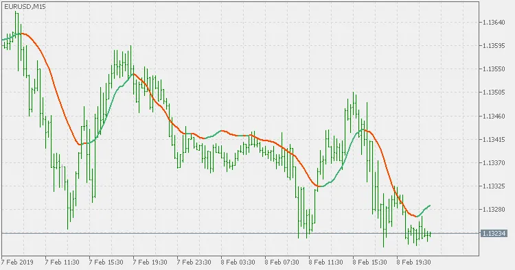 이렇게 하면 훨씬 더 나은 적합도를 얻을 수 있으며, 놀랍게도 동일한 기간을 사용하는 4개의 기본 평균보다 더 빠른 평균을 제공합니다. 그래서 이것이 저희의 메타트레이더 RMA 지표입니다.