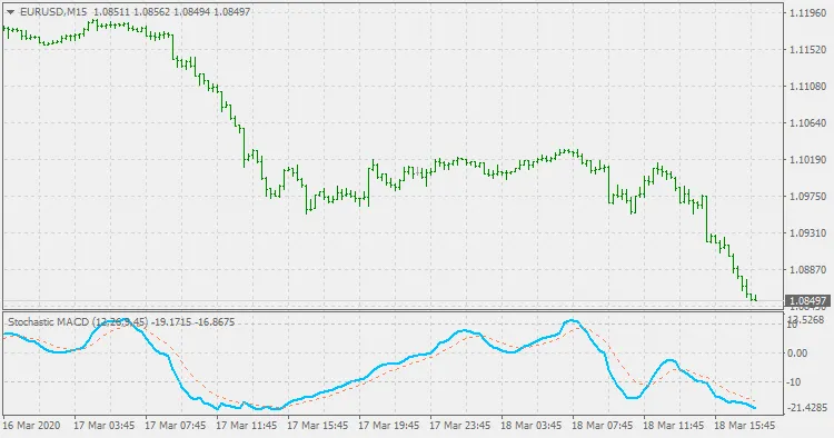 Voici la version pour MetaTrader 4 de cet indicateur. La version pour MetaTrader 5 est disponible ici : Stochastic MACD