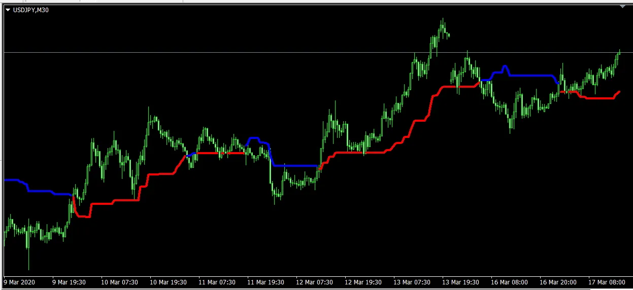 The Tether Line Indicator works by drawing two distinct lines on your chart: