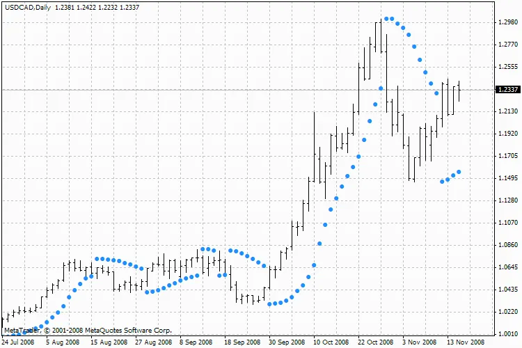 파라볼릭 SAR에 대한 전체 설명은 기술적 분석: 파라볼릭 SAR 섹션에서 확인할 수 있습니다.