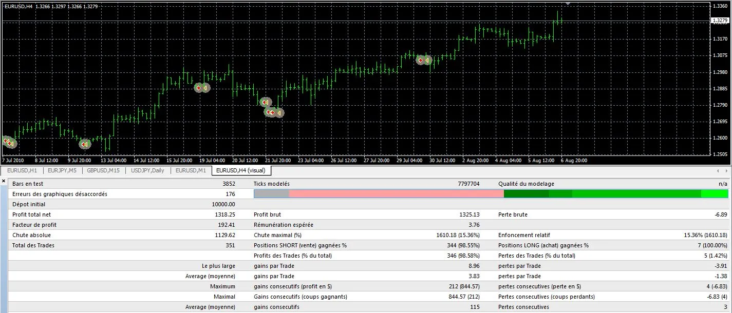 Recentemente, testei um sistema de trading em diversos pares, mas os melhores resultados foram obtidos no EUR/USD, especialmente no timeframe H4, tanto para operações long quanto short. Com um depósito de conta de 10.000$, consegui resultados bem interessantes!