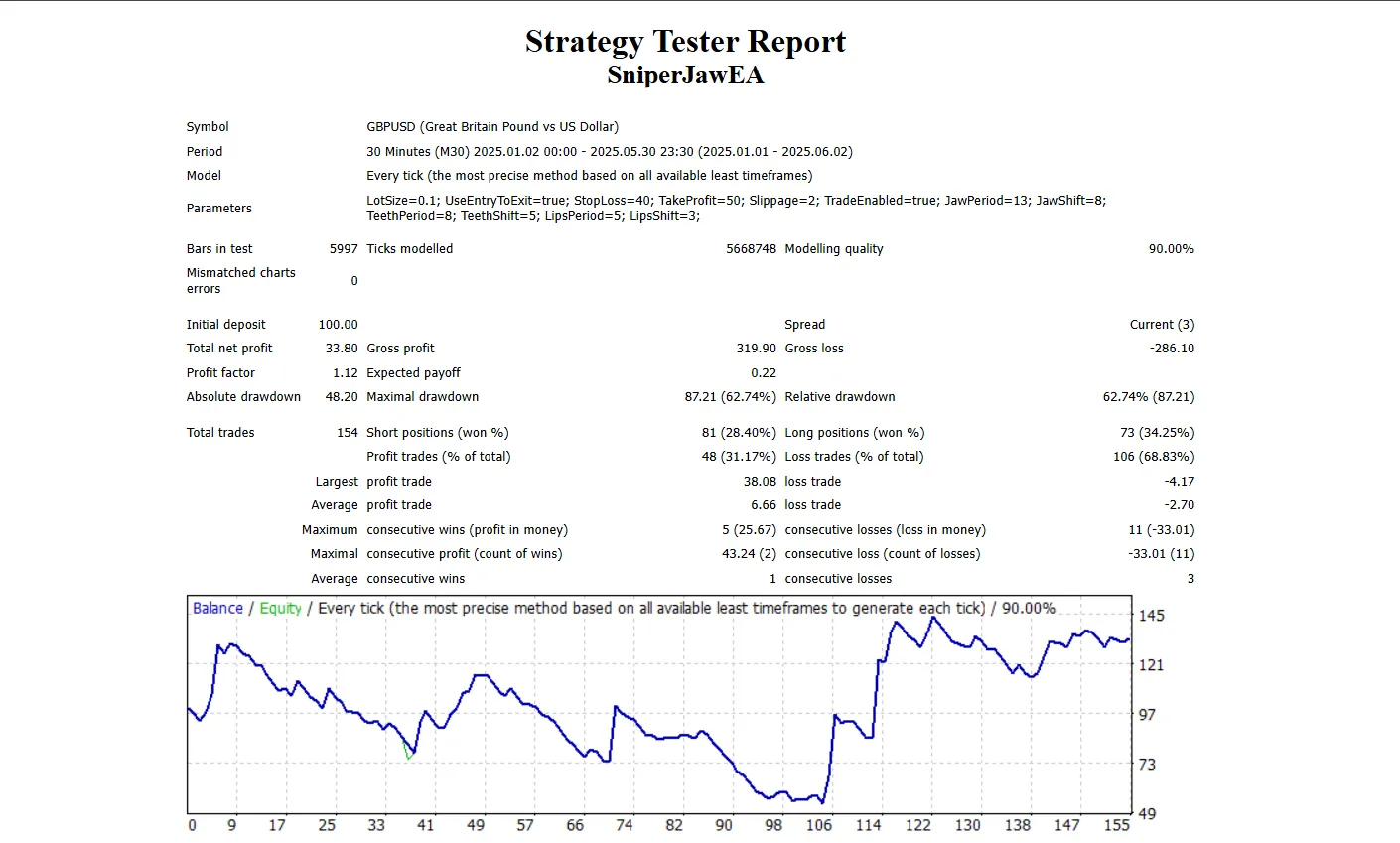 Apakah anda ingin meningkatkan prestasi dagangan anda? Kenali SniperJaw EA, robot dagangan yang berfungsi dengan satu perdagangan pada satu masa! Menggunakan indikator Alligator (Rahang, Gigi, Bibir), SniperJaw EA membantu anda mengikut aliran pasaran dengan lebih berkesan.