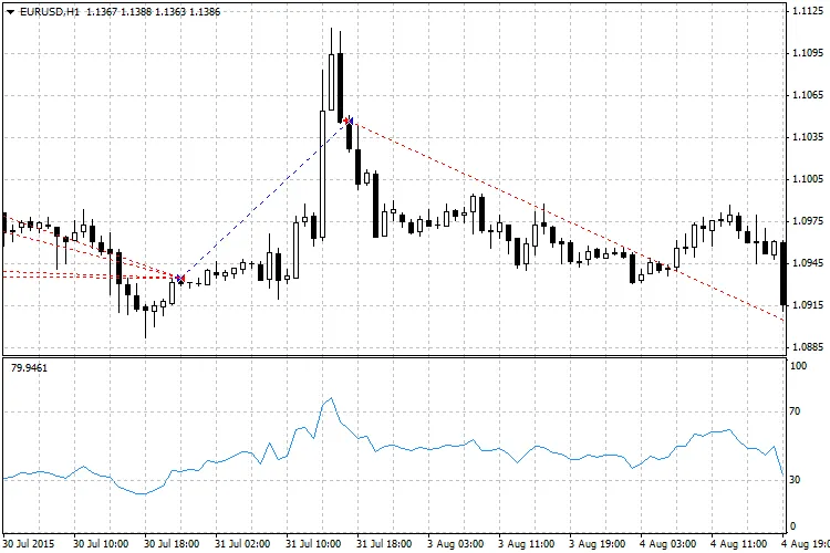 由于在蜡烛图形成过程中,指标可能会暂时穿越任一水平(上限或下限),因此交易信号会在蜡烛图收盘时进行验证,交易将在下一根蜡烛图的开盘时开启。至于平仓,主要是在出现相反信号时进行。如果存在买入交易,而此时出现卖出信号,则所有买入交易会被平仓,同时开启一笔卖出交易。
