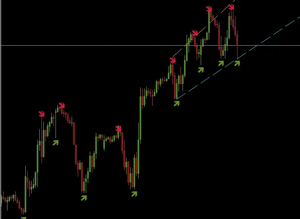 Con estos datos, el robot inteligente crea automáticamente una línea de tendencia en la que el movimiento del mercado reacciona.