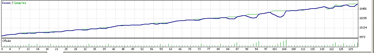 顾问会在首次开仓后,若价格趋于有利方向,自动持有仓位,等待止盈执行。若使用资金计算(Lots = 0,Percent => 1),每个新交易的结果将比之前的仓位稍微大一些。为了计算可用资金的百分比,使用了MQL4的代码,经过修改后可以指定小数值(如1.1%、1.8%等)。