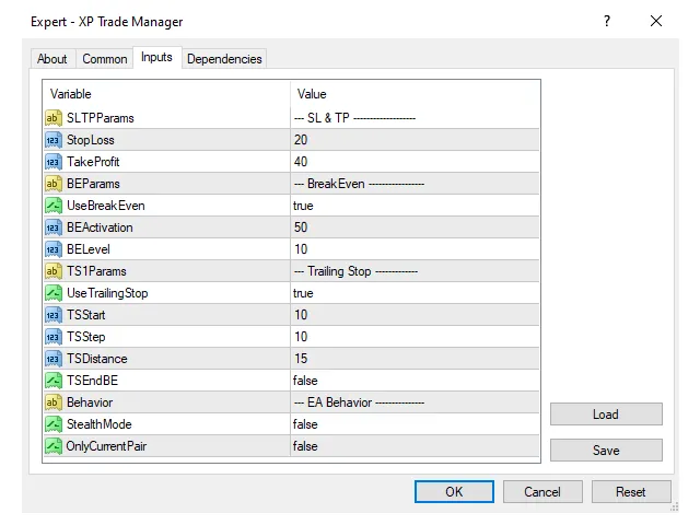 当你开启一个新的交易订单时,交易管理器会自动为你设置止损和获利点位。而当市场价格波动时,这个程序能够将止损点位移动到盈亏平衡(即止损=开盘价),或者持续移动止损(追踪止损)来保护你的利润。