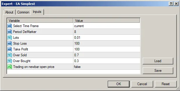 extern ENUM_TIMEFRAMES TF = PERIOD_CURRENT;// 选择时间框架 extern int period = 8;// DeMarker周期 extern double lt = 0.01;// 手数 extern int sl = 100;// 止损 extern int tp = 100;// 止盈 extern double OB = 0.7;// 超卖 extern double OS = 0.3;// 超买 extern bool OPENBAR = false;// 在新柱开启价格时交易